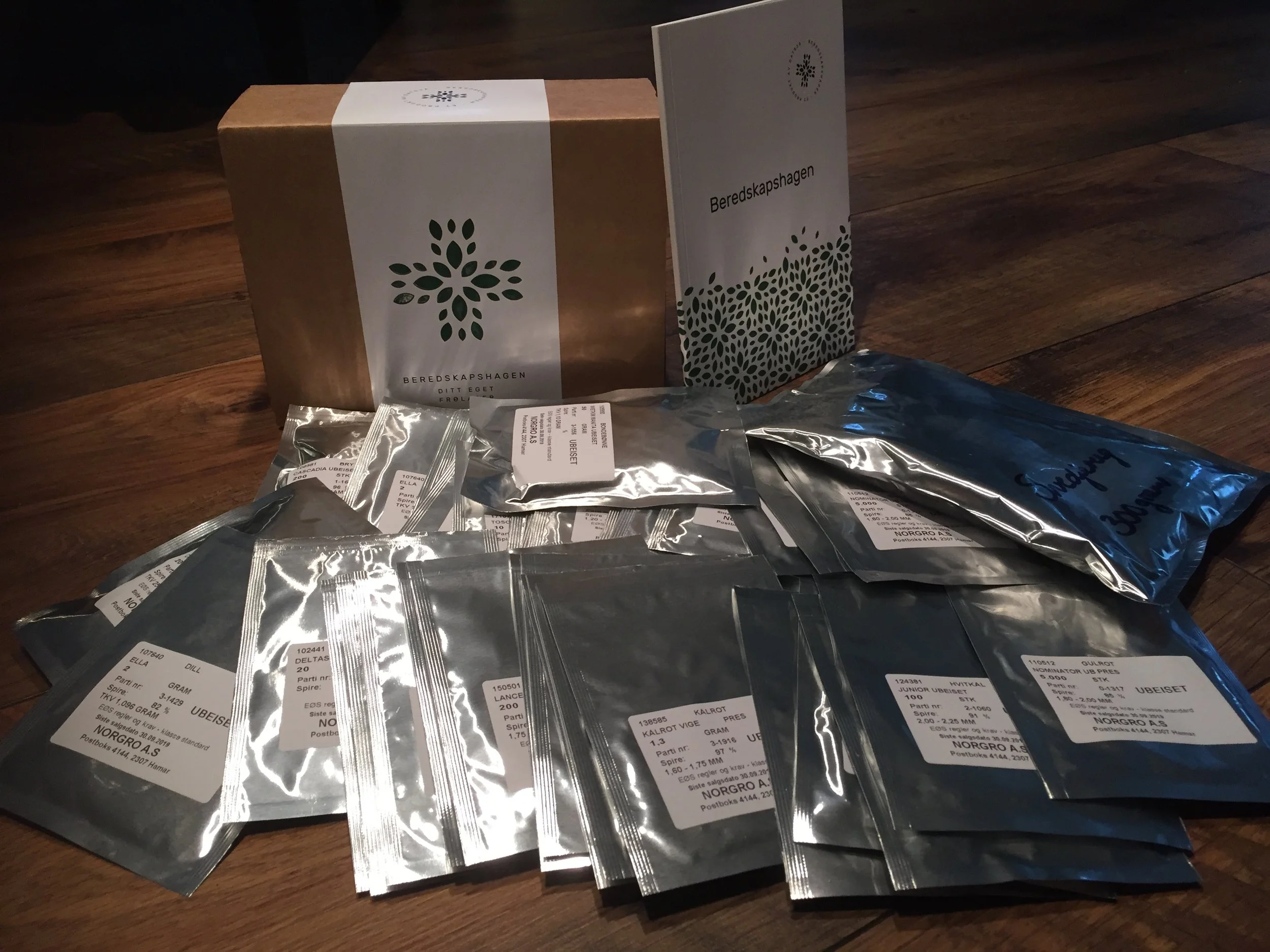 Beredskapshagen fra Datsja inneholder i alt 38 frøposer klare for nedfrysing